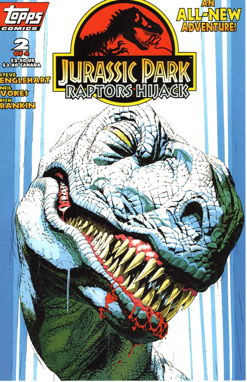 JURASSIC PARK RAPTORS HIJACK PRINT SIGNED MICHAEL GOLDEN