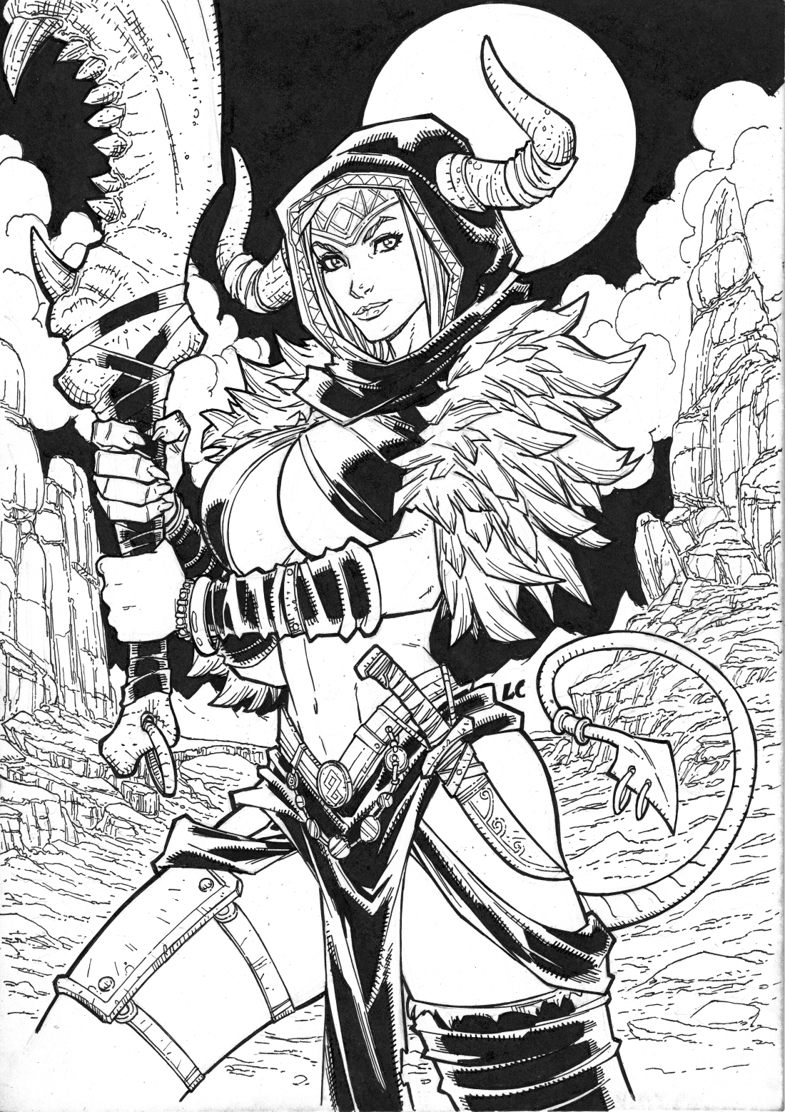 Kallys, Queen of the Valley of Bones Original Ink Art by LC Freitas