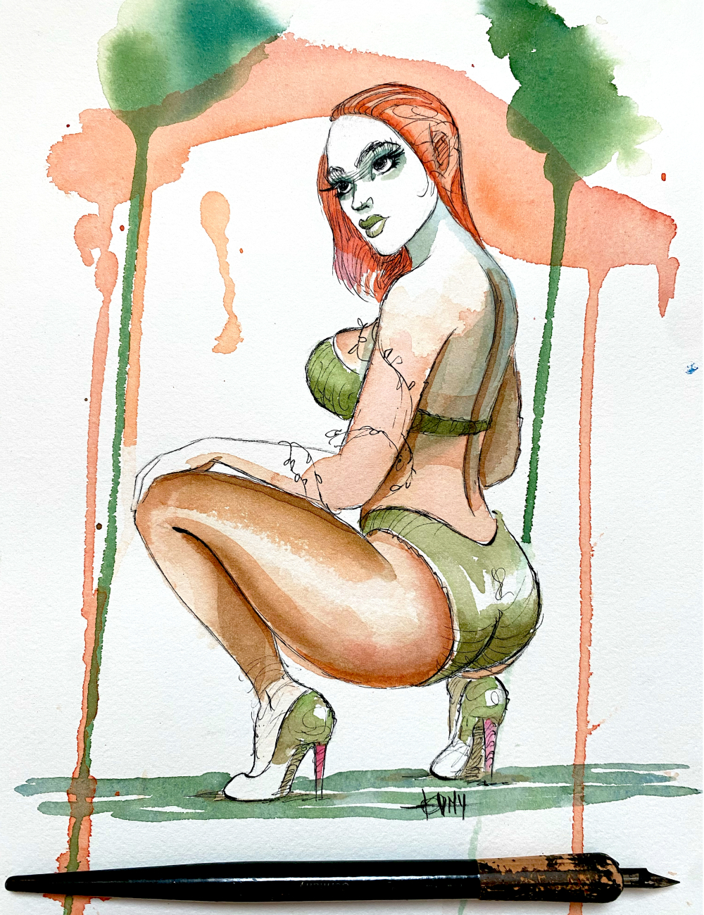 Poison Ivy - ink & watercolor - 9x12