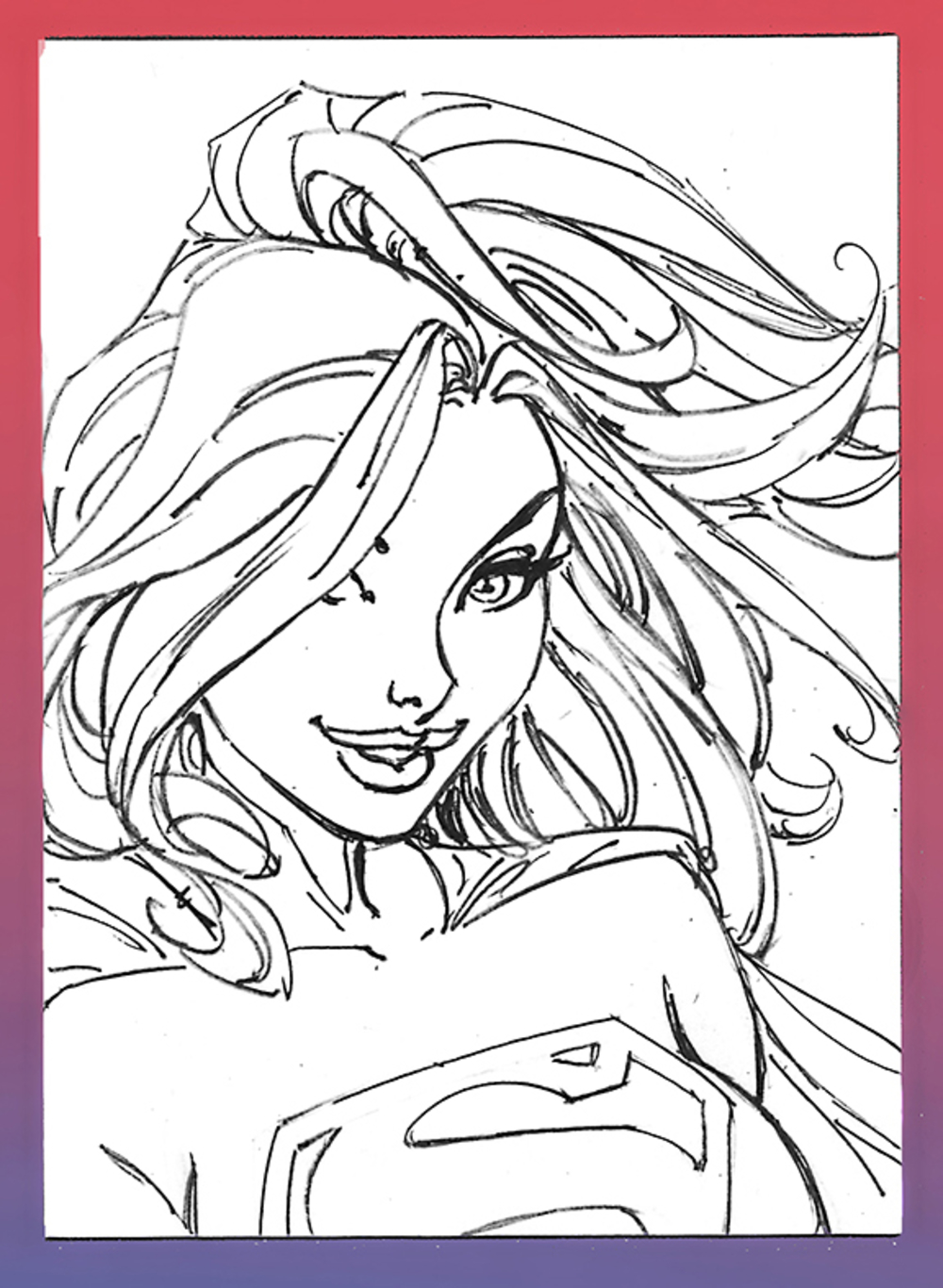 Super Girl Pencil Sketch Card