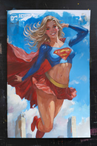 A new bid of $665 from Bidder 18415 on Supergirl - Acrylic painting on Blank Variant comic