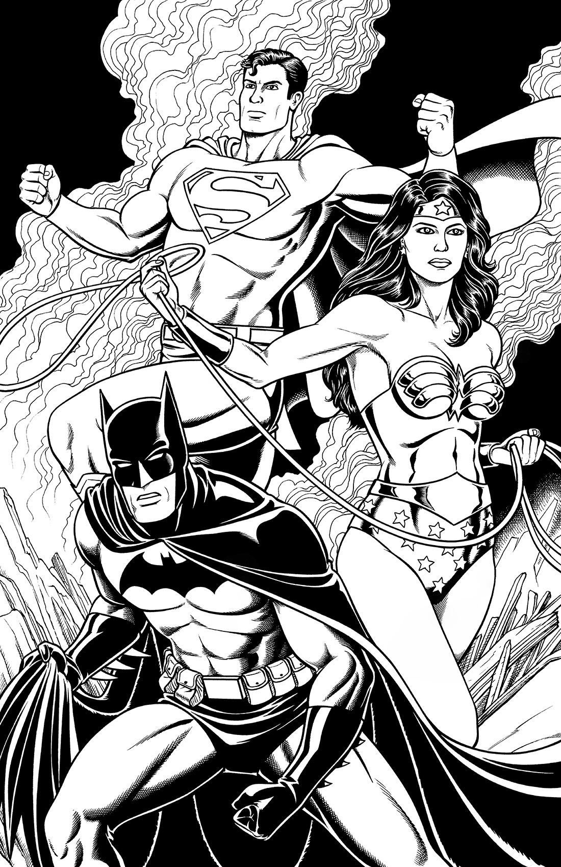11x17 BATMAN, SUPERMAN, and WONDER WOMAN Pin-Up by the Fraim Bros.!
