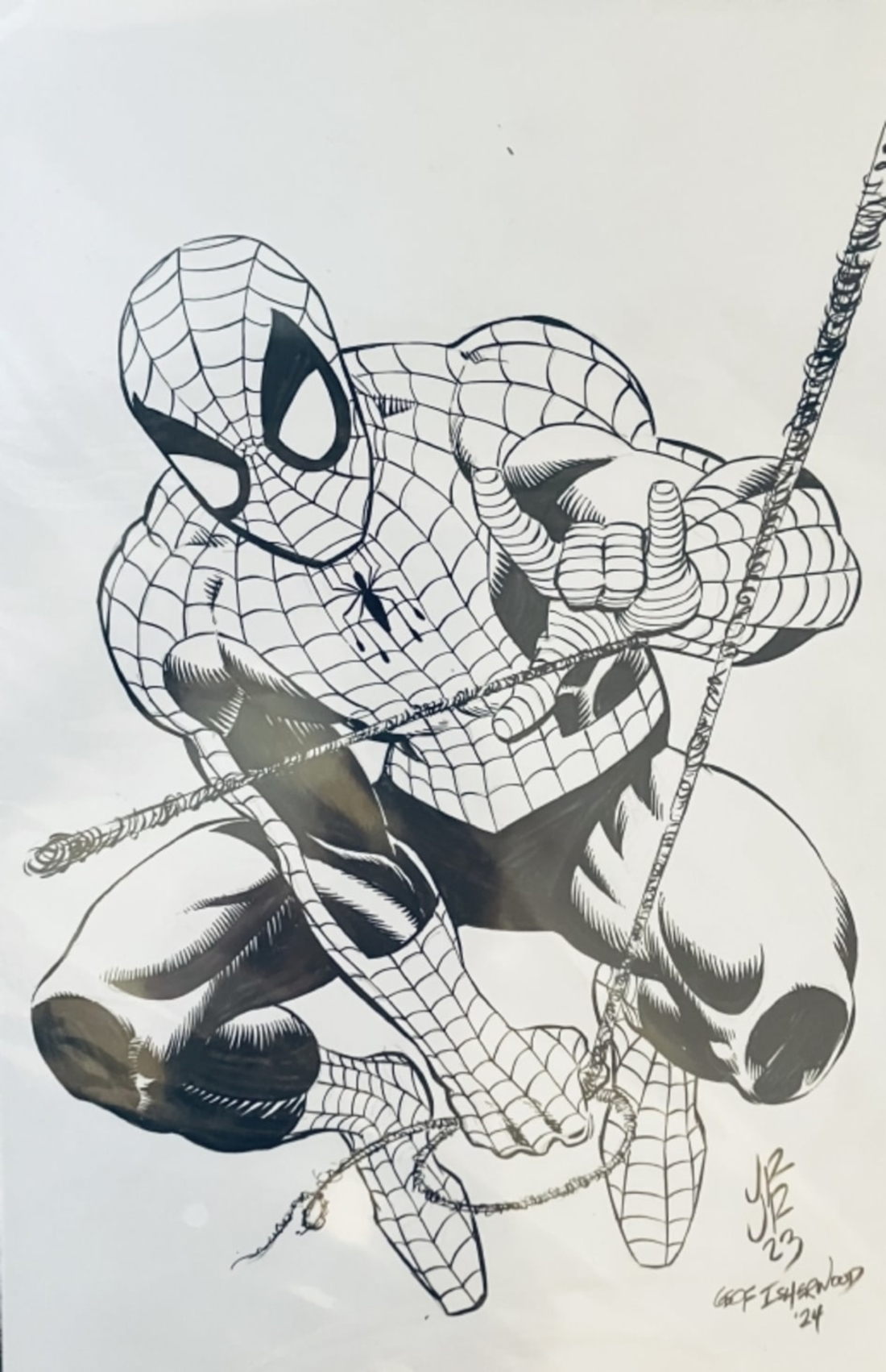 11x17 inch Geof Isherwood (separate inks-only Board) Spider-Man commission, over John Romita Jr pencils ! Signed by Geof Isherwood!