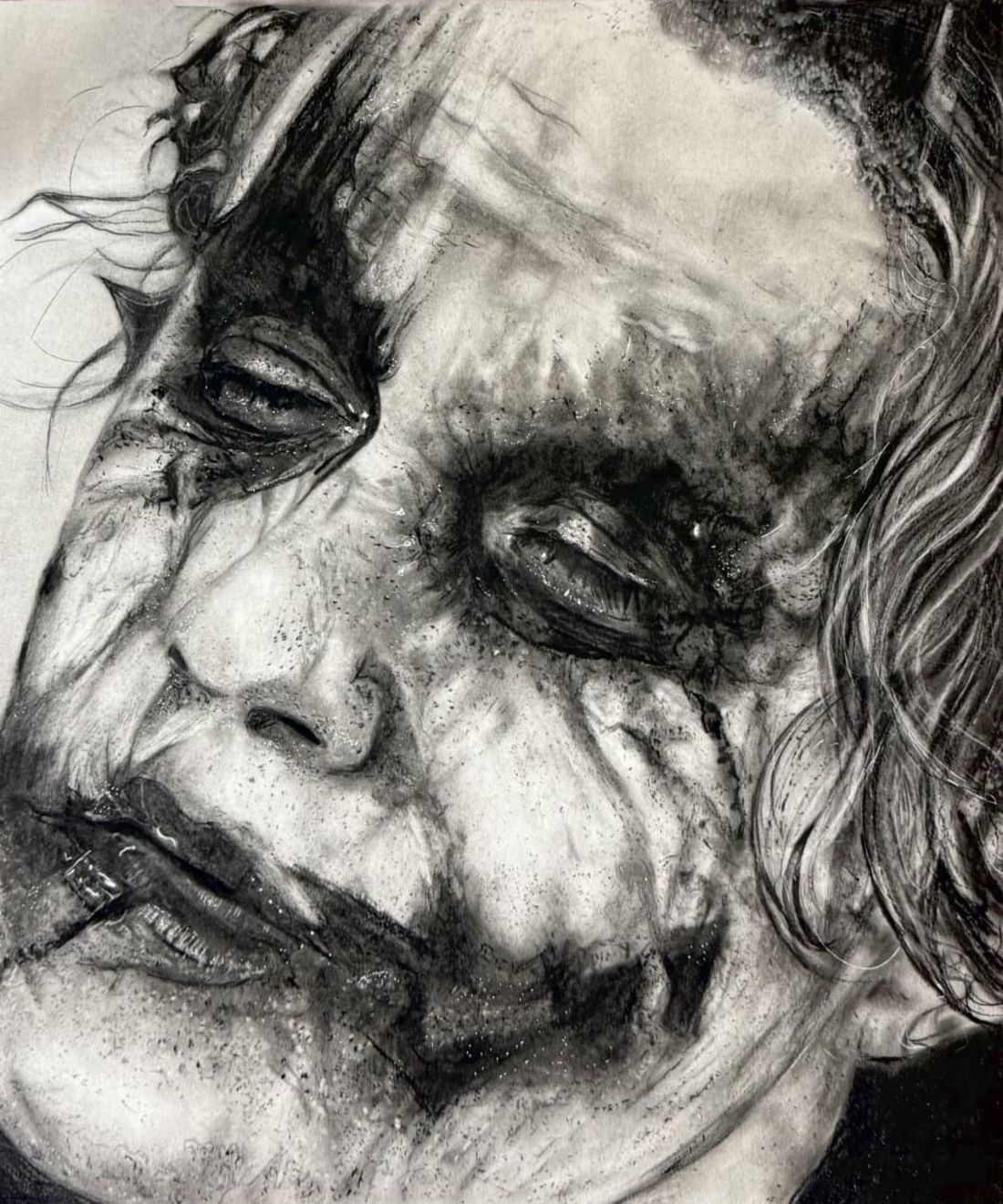 16x 20 Charcoal Hand Drawn Signed Joker Portrait Original Art