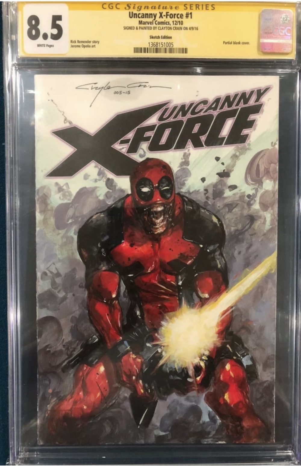 Clayton Crain Deadpool Uncanny X-Force #1 CGC 8.5 Signed Sketch Cover