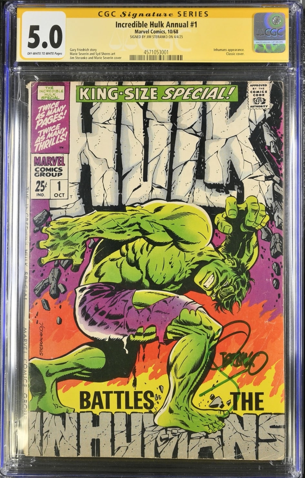 Incredible Hulk Annual #1 CGC 5.0 Signed by Jim Steranko