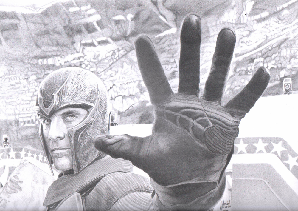 Magneto 11x17" amazing original pencil art by Wendel Azevedo