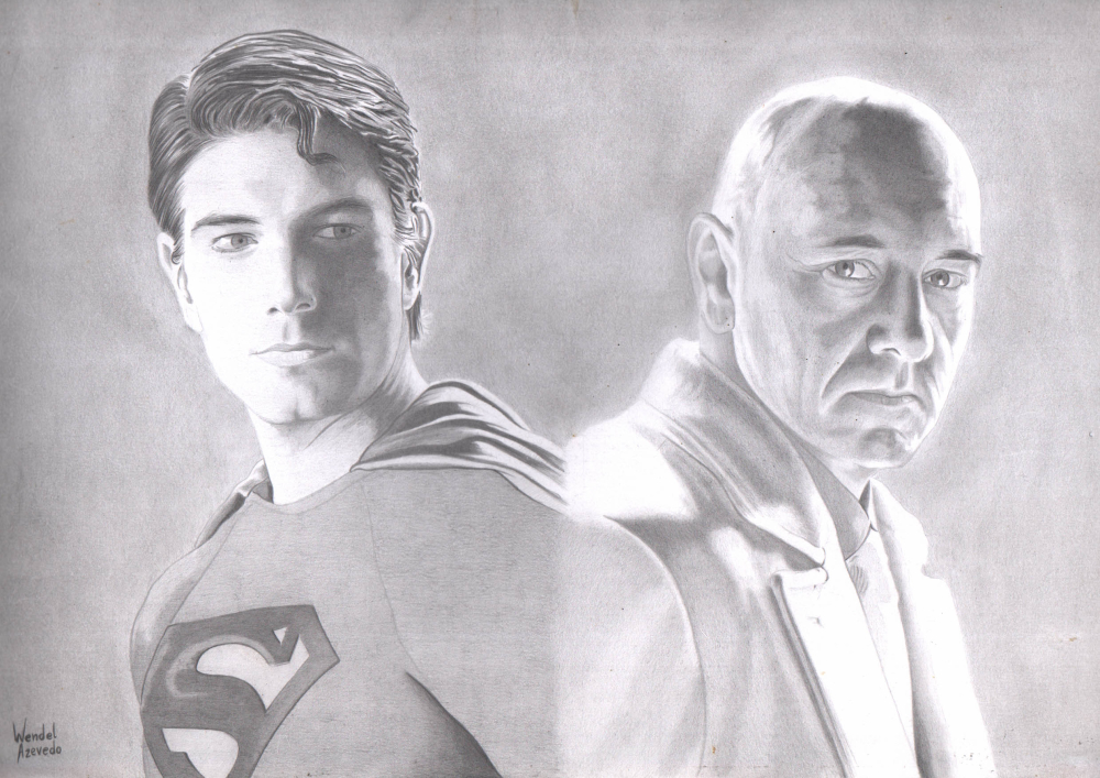 Superman & Luthor 11x17" amazing original pencil art by Wendel Azevedo
