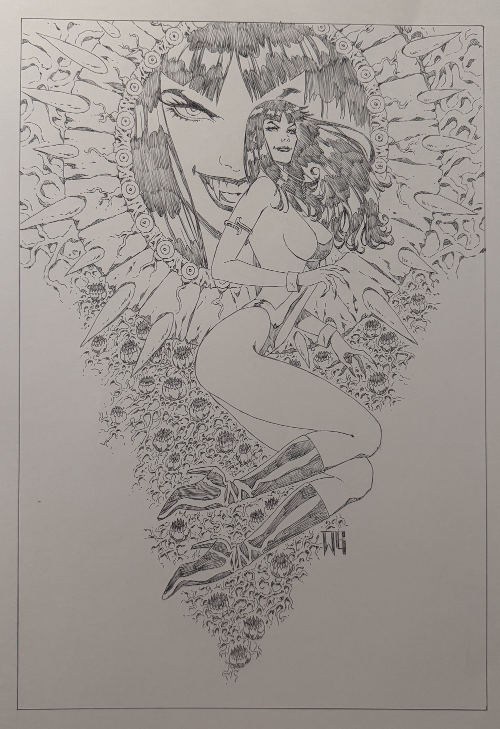 Vampirella Original Ball point pen original art by Walter Geovani
